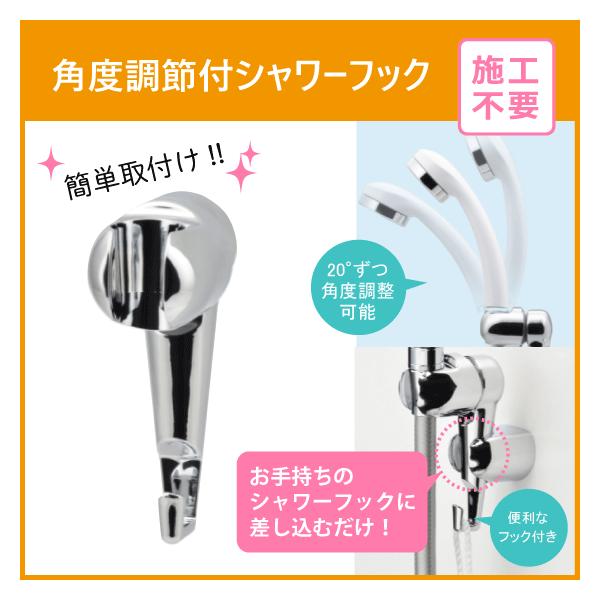 取付簡単な角度調節機能付きシャワーフック 角度調節付シャワーフック ホワイト 取付け簡単 後付式 角度調整 生活雑貨 お風呂グッズ 大規模セール バスグッズ 小物掛け シャワーホルダー